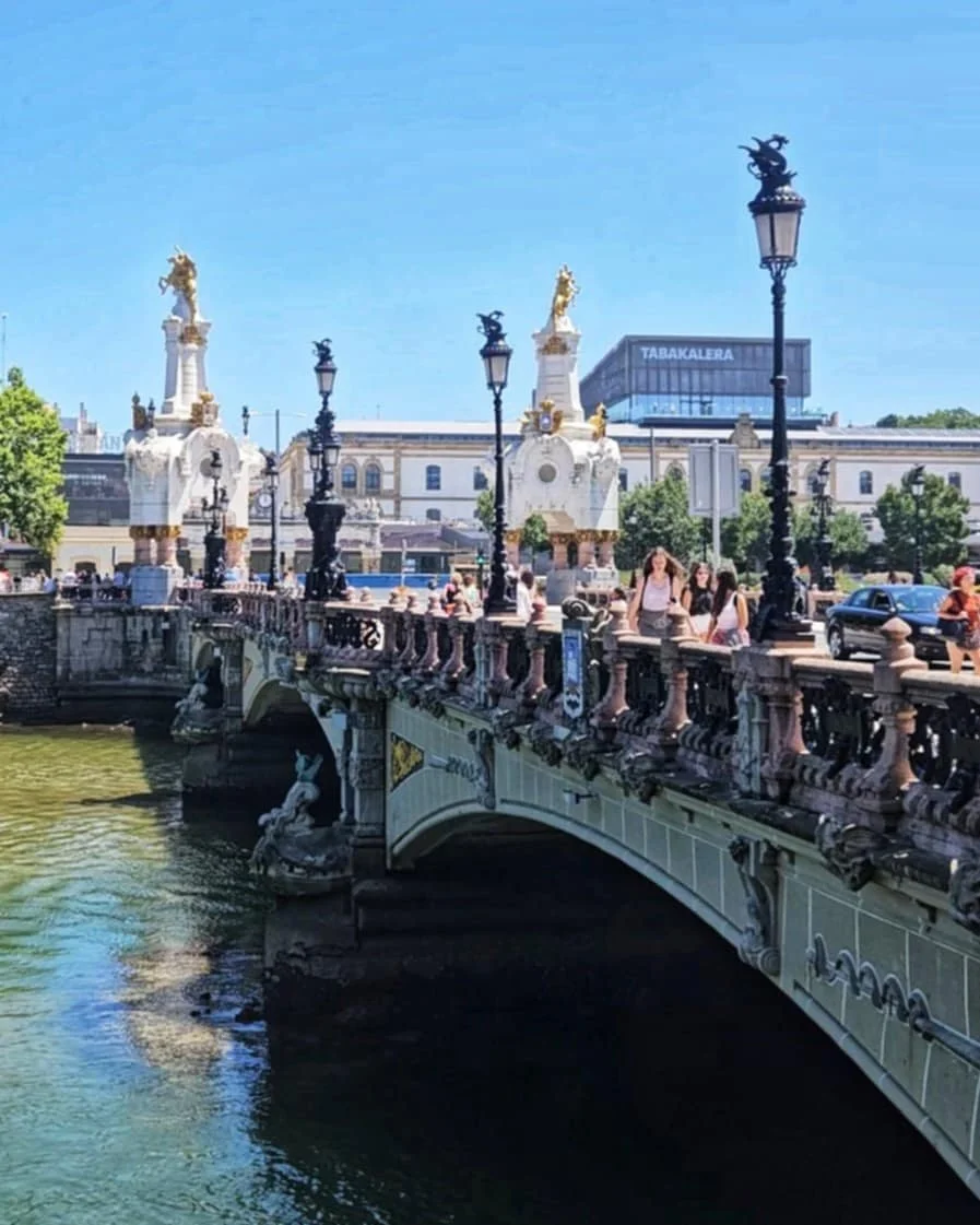 Several elegant bridges cross the river, but the most impressive is Maria Cristina Bridge, with its decorative lamps and statues.
