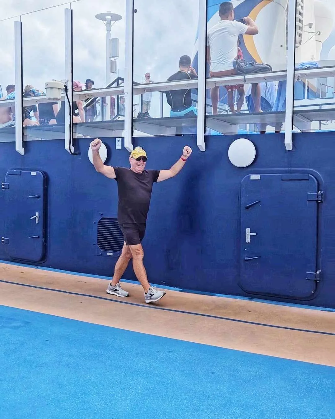 We had a walk around the top deck where there is walking track that takes you all around the ship. From here you can see all the outdoor pool and bar areas.